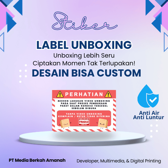 - Sticker Label Unboxing biasanya digunakan untuk branding segel produk pada kemasan yang polos untuk menambah daya tarik product, menambah nilai jual dan memberikan informasi untuk product tersebut. Produk ini sudah termasuk cutting KisCut.